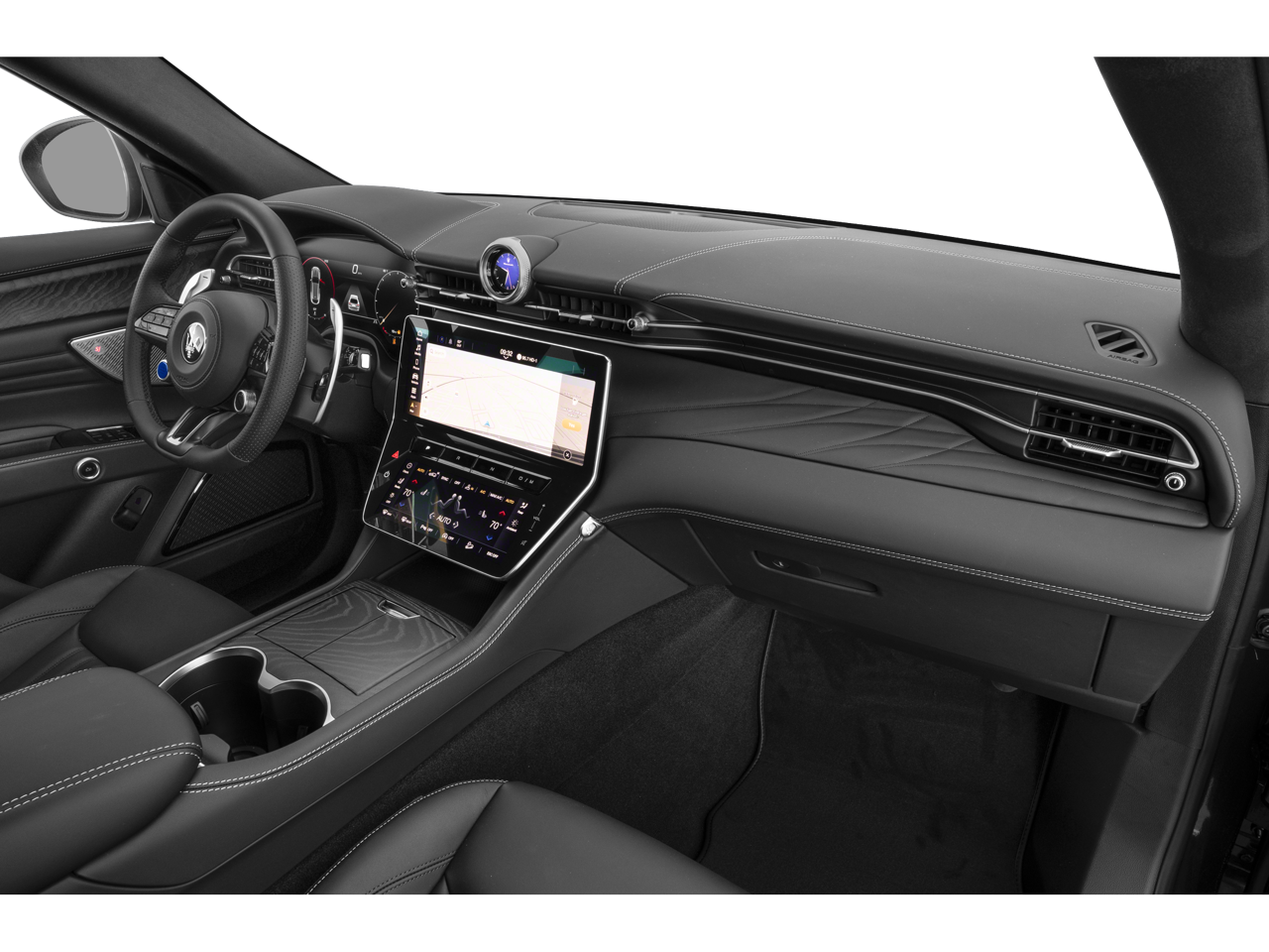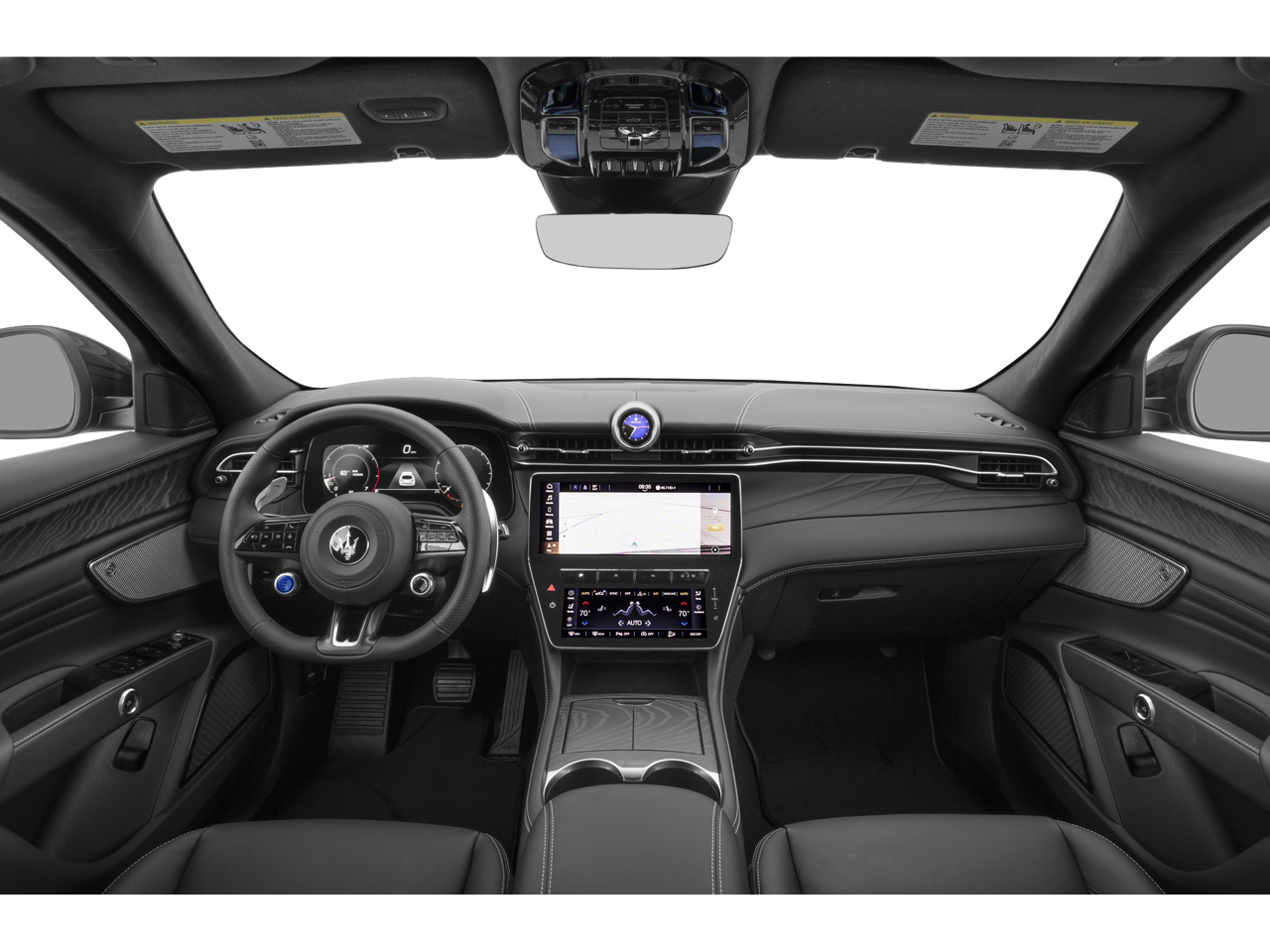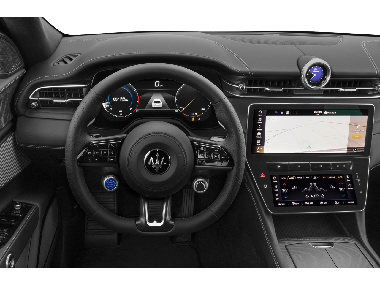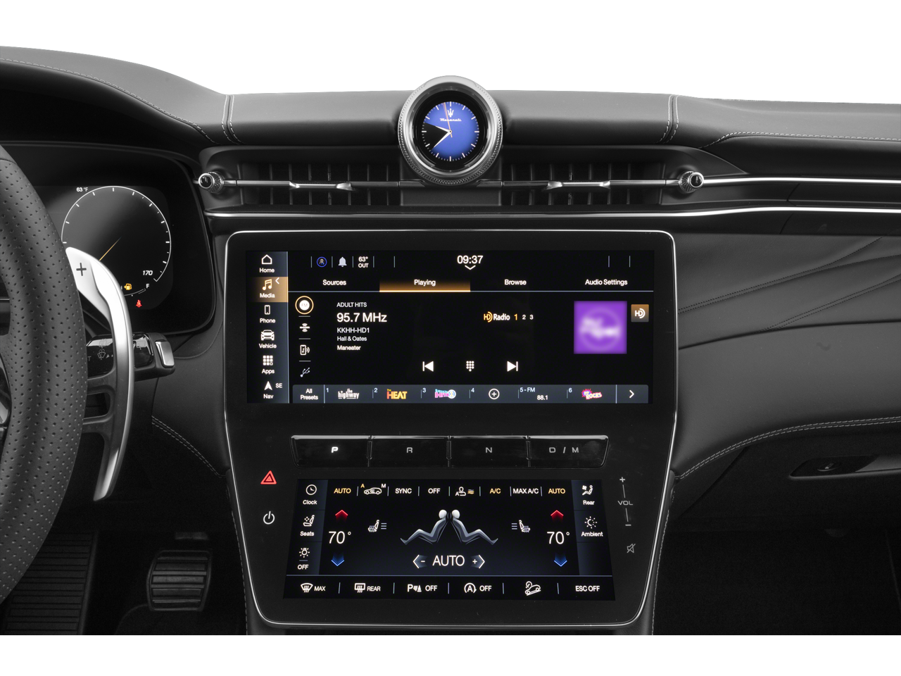 - Radio: Sonus Faber 860 Watts Premium Audio System -inc: 14 speakers w/subwoofer, Maserati Intelligent Assistant (MIA), 12.3" upper touchscreen, 8.8" lower touchscreen, navigation, HD radio, SiriusXM radio w/1-year trial subscription, wired and wireless Apple CarPlay and Android Auto, Maserati connected services w/trial subscriptions, Alexa in-vehicle voice assistant and eCall and bCall w/trial subscriptions