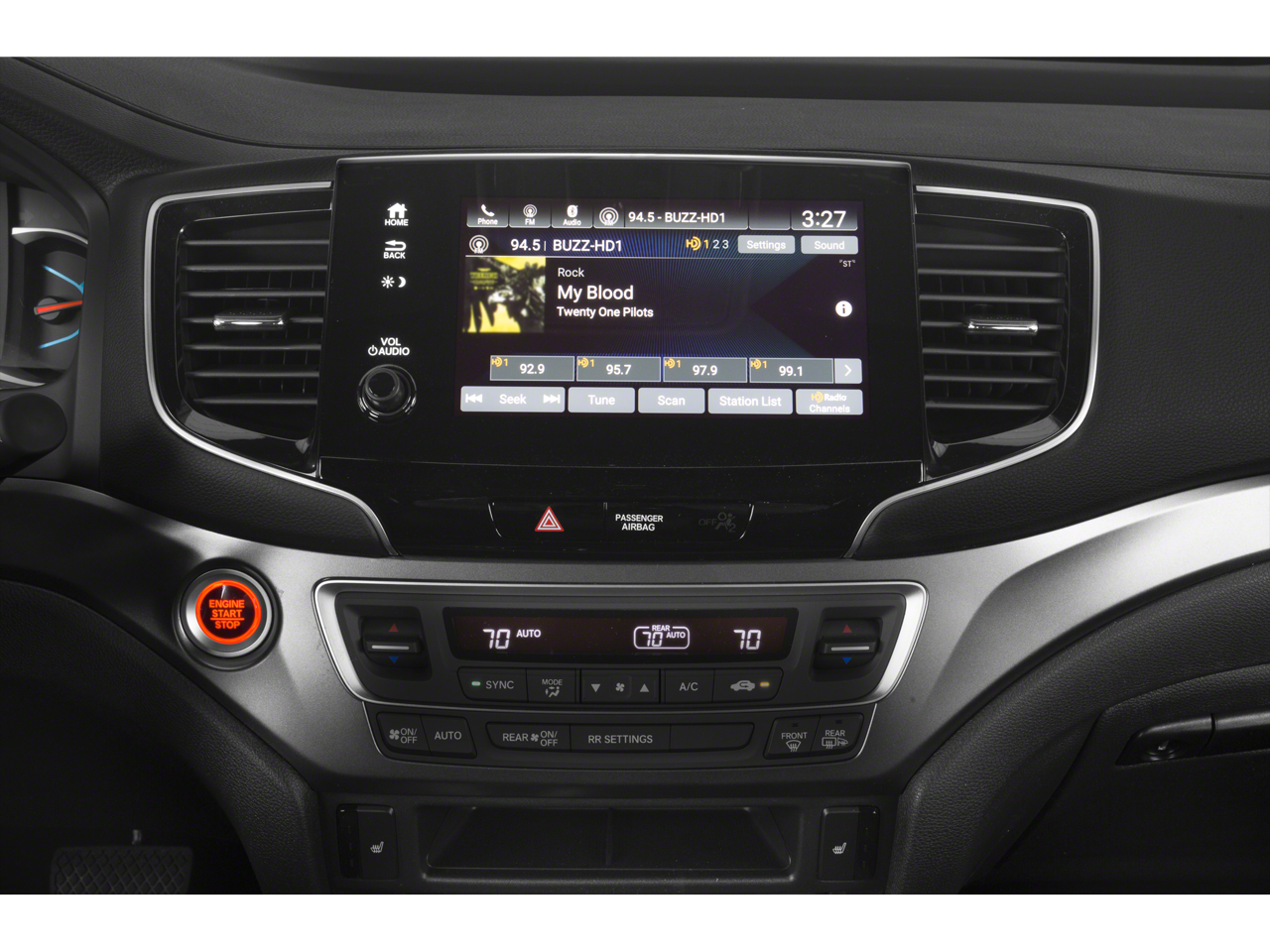 - Radio: 215-Watt Audio System w/7 Speakers -inc: subwoofer, 8" display audio w/high-resolution electrostatic touch-screen and customizable feature settings, Bluetooth® HandsFreeLink, Bluetooth® streaming audio, MP3/auxiliary input jack in center console, Radio Data System (RDS), Speed-Sensitive Volume Compensation (SVC), (3) 2.5-amp USB charging ports, 12-volt power outlets in front console, center console and cargo area, HondaLink, Apple CarPlay integration, Android Auto integration, CabinControl remote compatibility, SMS text message function, SiriusXM, HD Radio and 2.5-amp USB smartphone/audio interface port in front console SiriusXM services require a subscription after any trial period.
