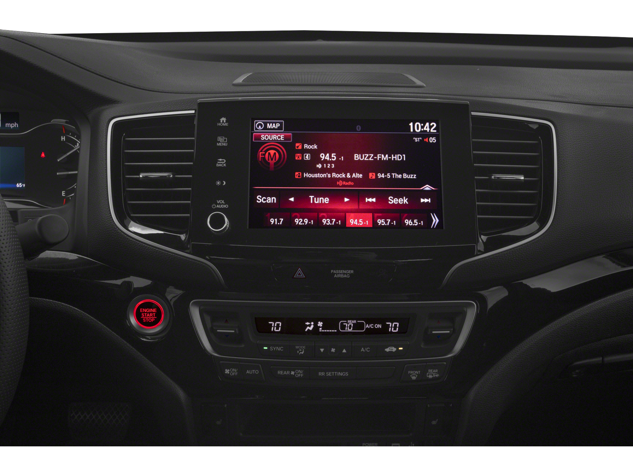 - Radio: AM/FM/MP3 Premium Audio System -inc: 540-watt, 8" display audio w/high-resolution electrostatic touch-screen and customizable feature settings, 8 speakers including subwoofer, Bluetooth® streaming audio, auxiliary input jack, Radio Data System (RDS), speed-sensitive volume compensation (SVC), Apple CarPlay, Android Auto, HondaLink, SMS text message function, 1.5-amp USB smartphone/audio interface, 3 2.5-amp USB charging ports, HD Radio, navigation system, truck-bed audio and wireless phone charger