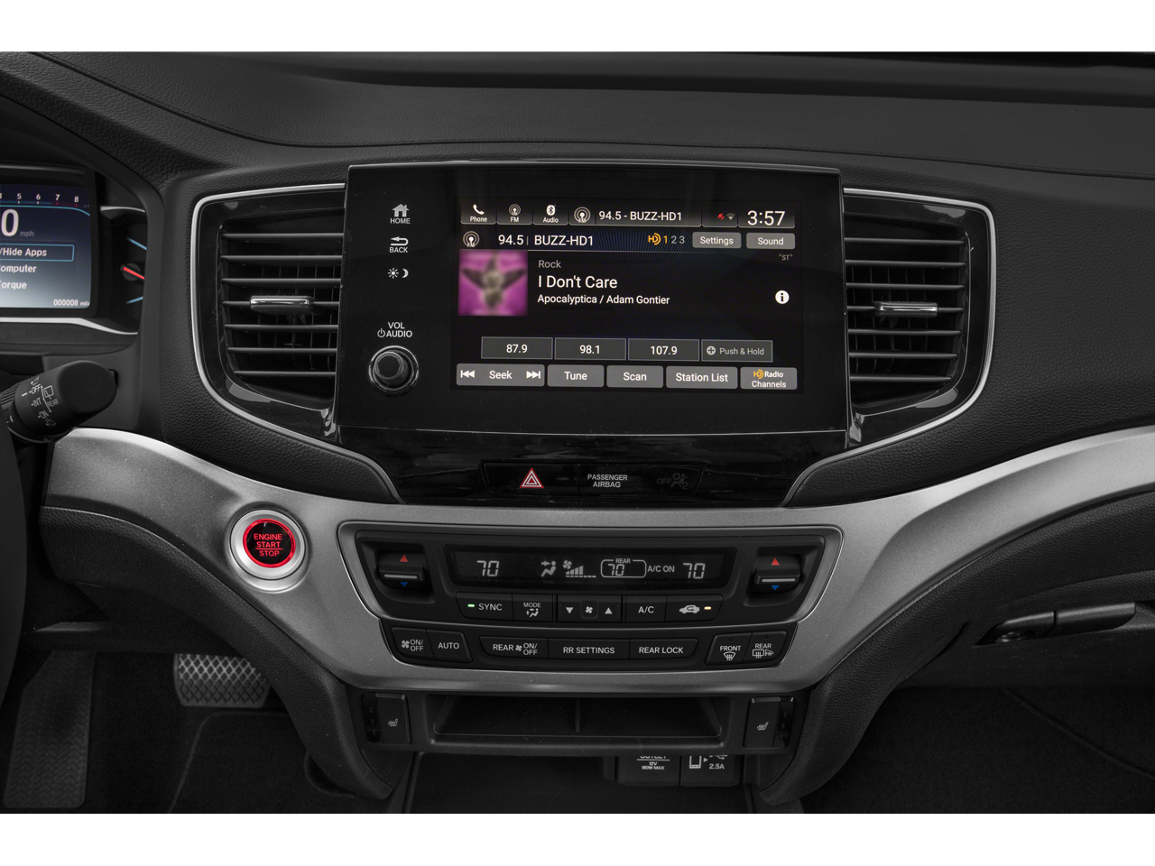 - Radio: 215-Watt Audio System -inc: 7 speakers, subwoofer, Bluetooth® HandsFreeLink and streaming audio, MP3/auxiliary input jack, Radio Data System (RDS), Speed-sensitive Volume Compensation (SVC), 2.5-amp USB charging port (1 port in center console/2 ports on 2nd-row), 8" display audio w/high-resolution touch-screen and customizable feature settings, HondaLink, CabinControl remote compatibility, Apple CarPlay integration, Android Auto integration, SMS text message function, SiriusXM (SiriusXM requires a subscription after any trial period, If you decide to continue your SiriusXM service at the end of your trial subscription, the plan you choose will automatically renew and bill at then-current rates until you call SiriusXM at 1-866-635-2349 to cancel, See our customer agreement for complete terms at www.siriusxm.com, Fees and programming subject to change, Available in the 48 contiguous United States and D.C, SiriusXM and all related marks and logos are trademarks of SiriusXM Radio Inc.), HD radio and 2.5-amp USB smartphone/audio interface (1 port in front console)