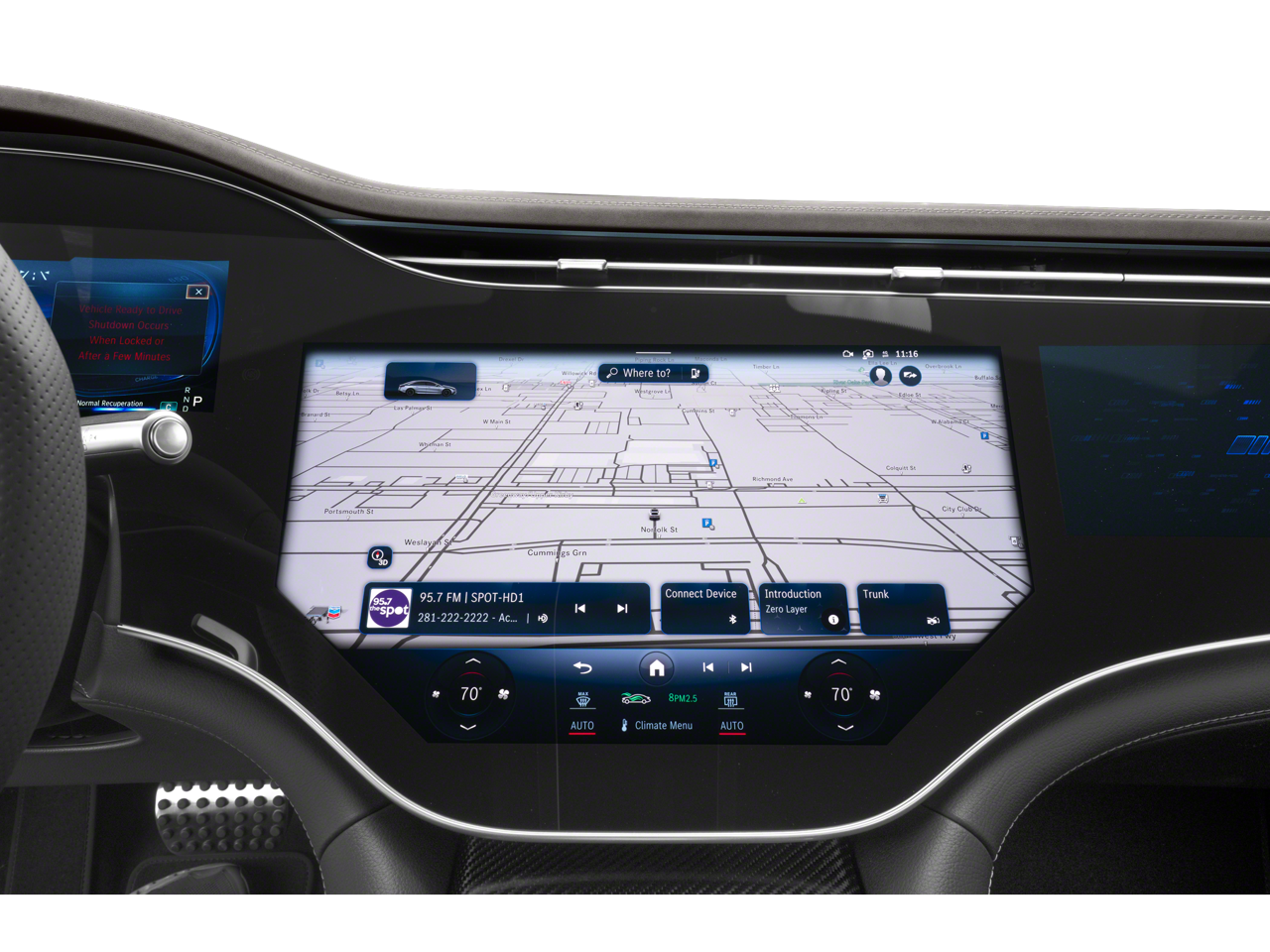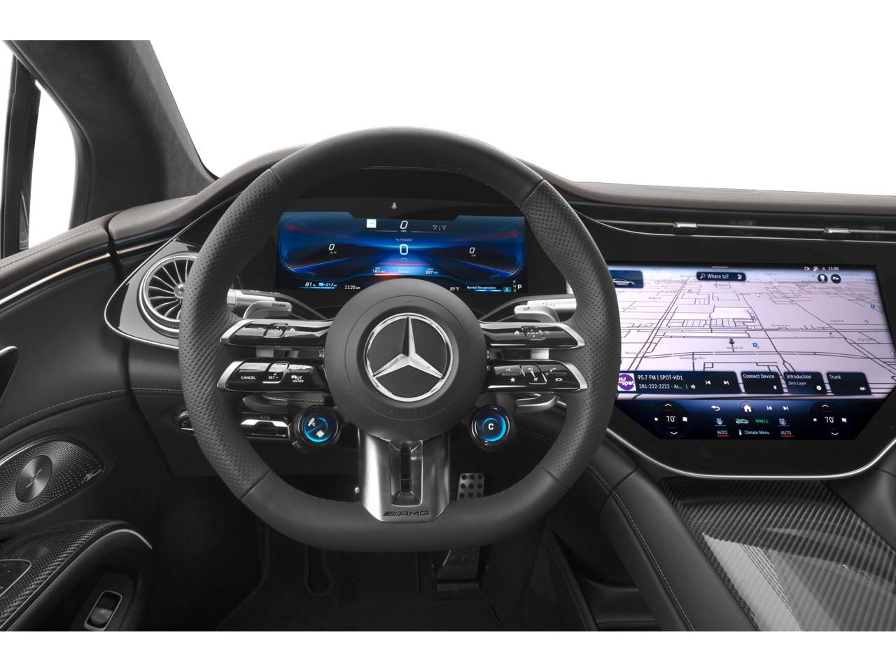 - Radio: Burmester 710W Sound System -inc: 15 speakers, 3D sound, EQ sound experience and sound personalization, MBUX hyperscreen w/12.3" driver display, 17.7" OLED central display, and 12.3" OLED passenger display, SiriusXM satellite radio, MBUX profile authentication via fingerprint scanner and facial recognition, wireless smartphone integration (Apple CarPlay and Android Auto)