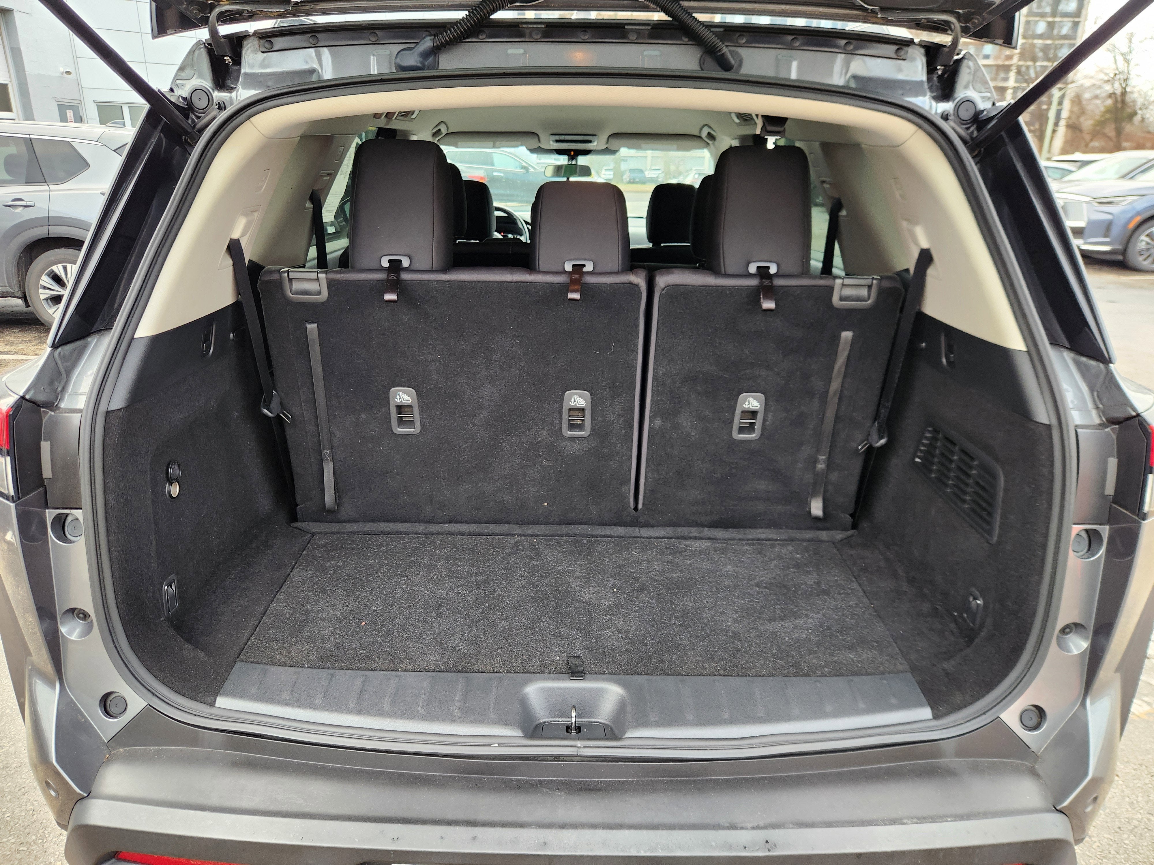 - Fixed 60-40 Bench Cloth 3rd Row Seat Front, Manual Recline, Manual Fold Into Floor, 3 Manual and Adjustable Head Restraints