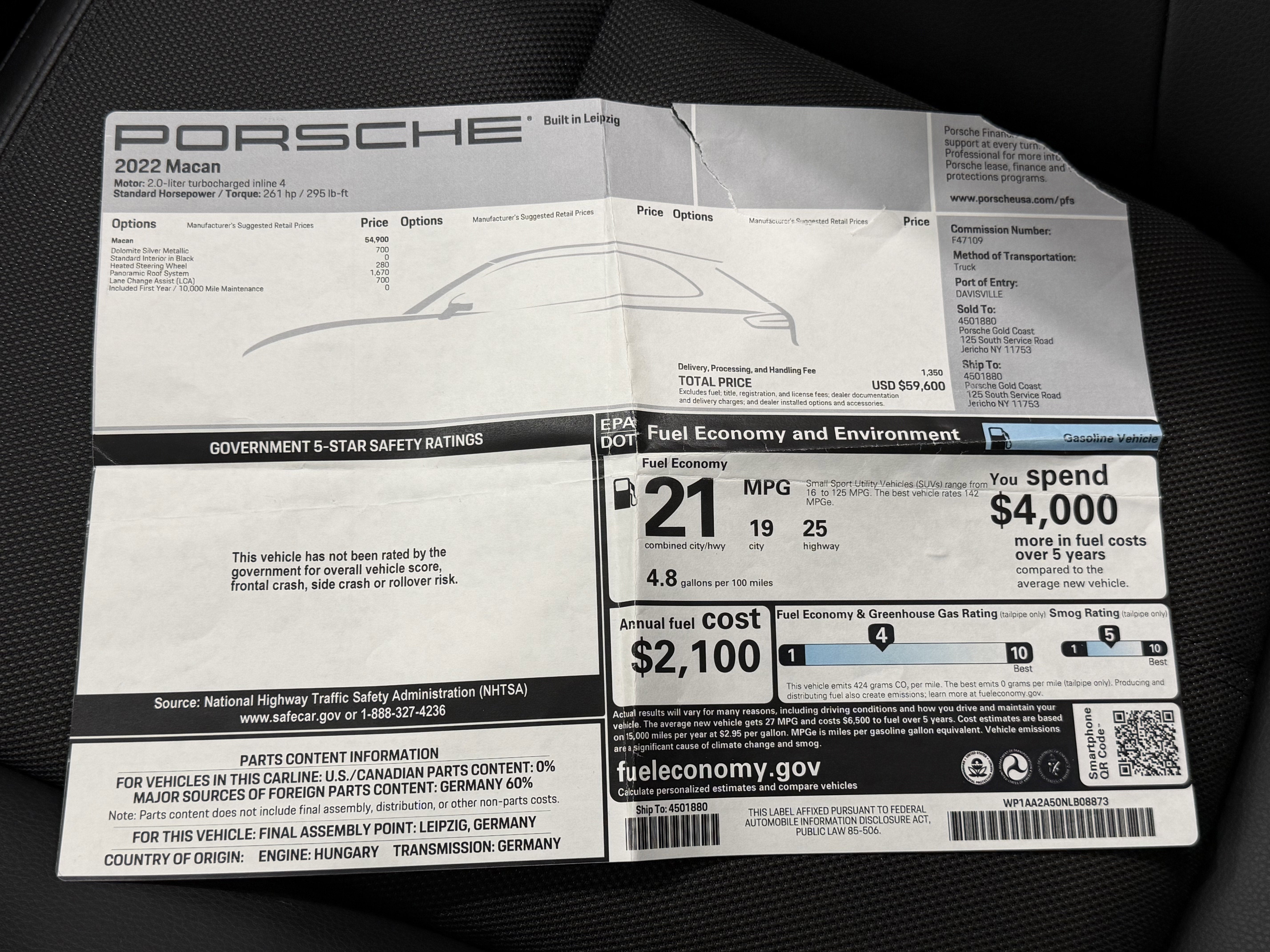 - Fuel Economy Est-Combined (MPG): 21