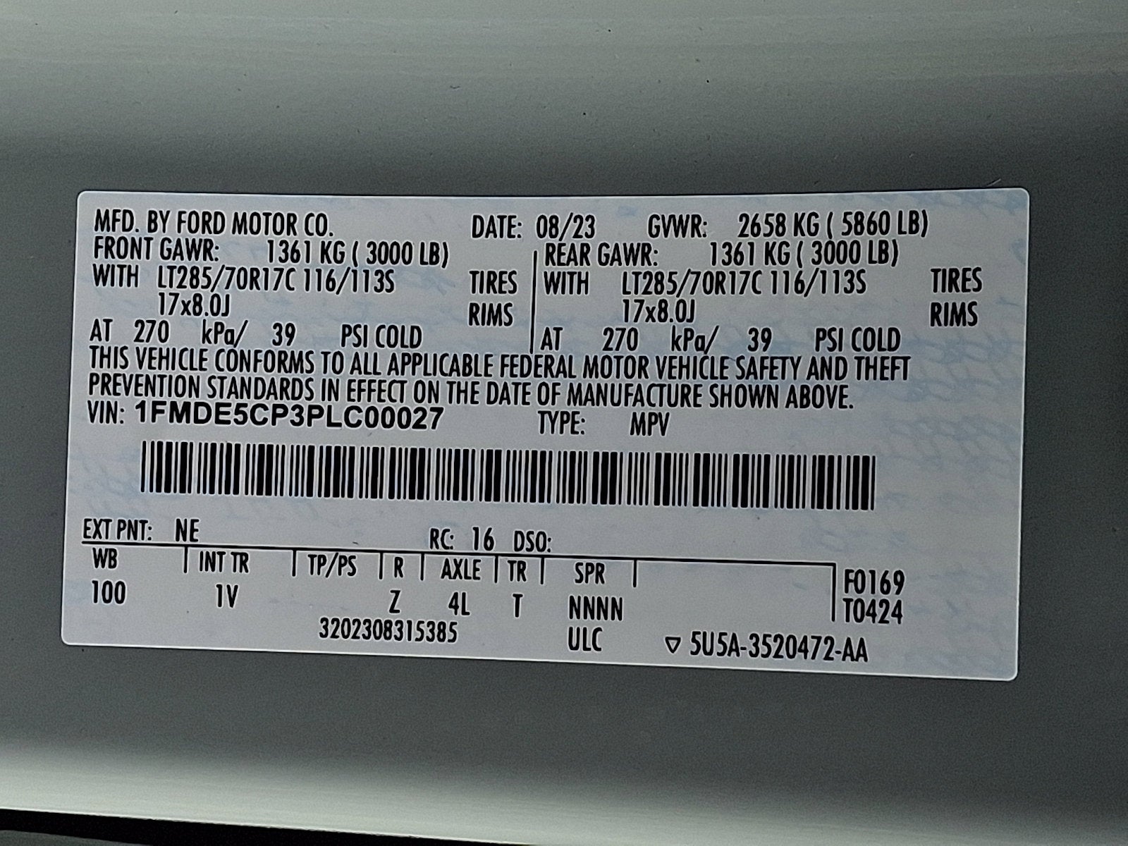 - Gross Vehicle Weight Rating Cap (lbs): 5720
