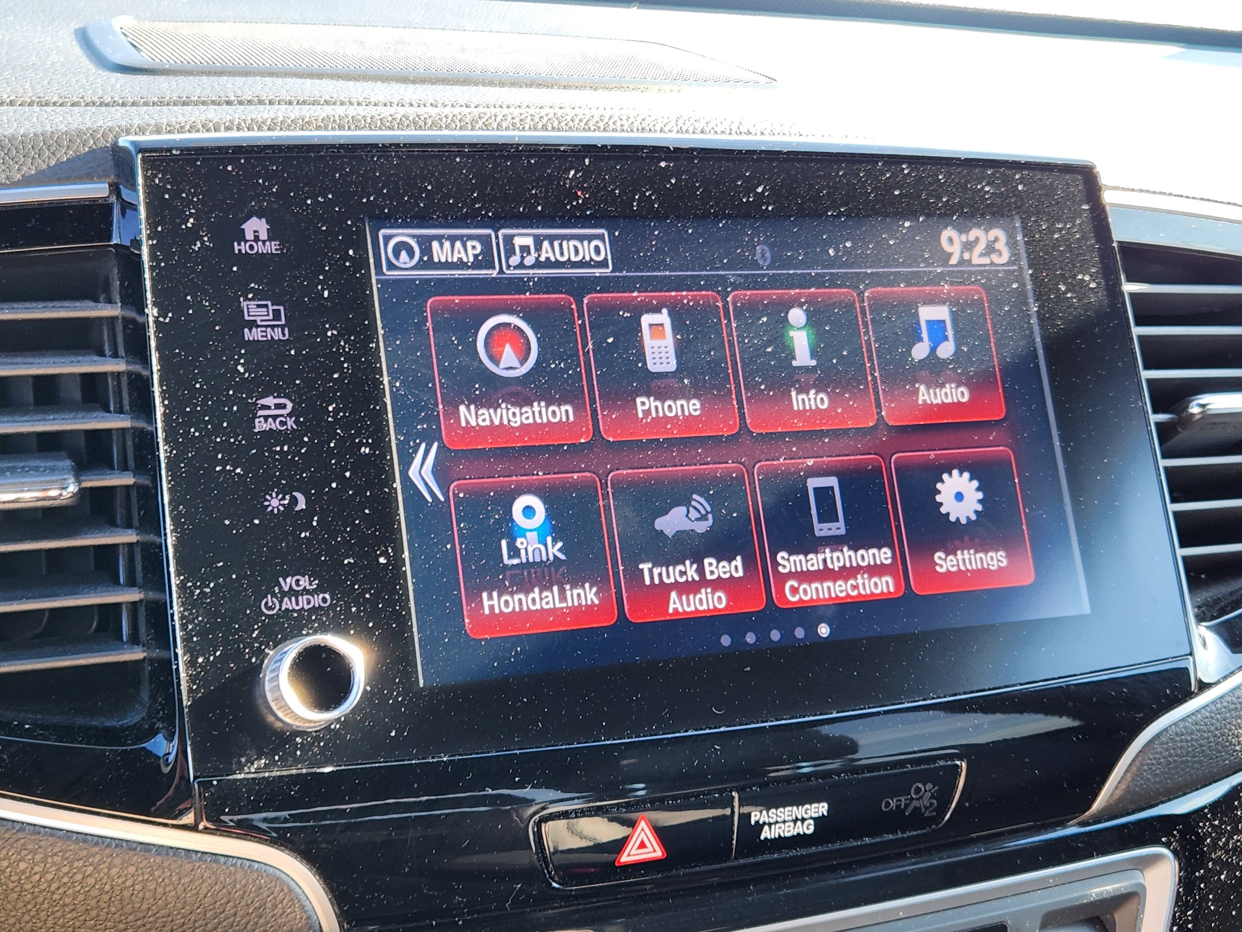 - Radio: 540-Watt Premium Audio System w/8 Speakers -inc: subwoofer, Bluetooth® streaming audio, MP3/auxiliary input jack, Radio Data System (RDS), Speed-Sensitive Volume Compensation (SVC), 8" display audio w/high-resolution electrostatic touch screen and customizable feature settings, Apple CarPlay compatibility, Android Auto compatibility, HondaLink, SMS text message function (Compatible w/select phones w/Bluetooth®, Your wireless carrier's rate plans apply, State or local laws may limit use of texting feature, Only use texting feature when conditions allow you to do so safely.), 1.5-amp USB smartphone/audio interface in front console (1 port), HD Radio, truck-bed audio system and wireless phone charger