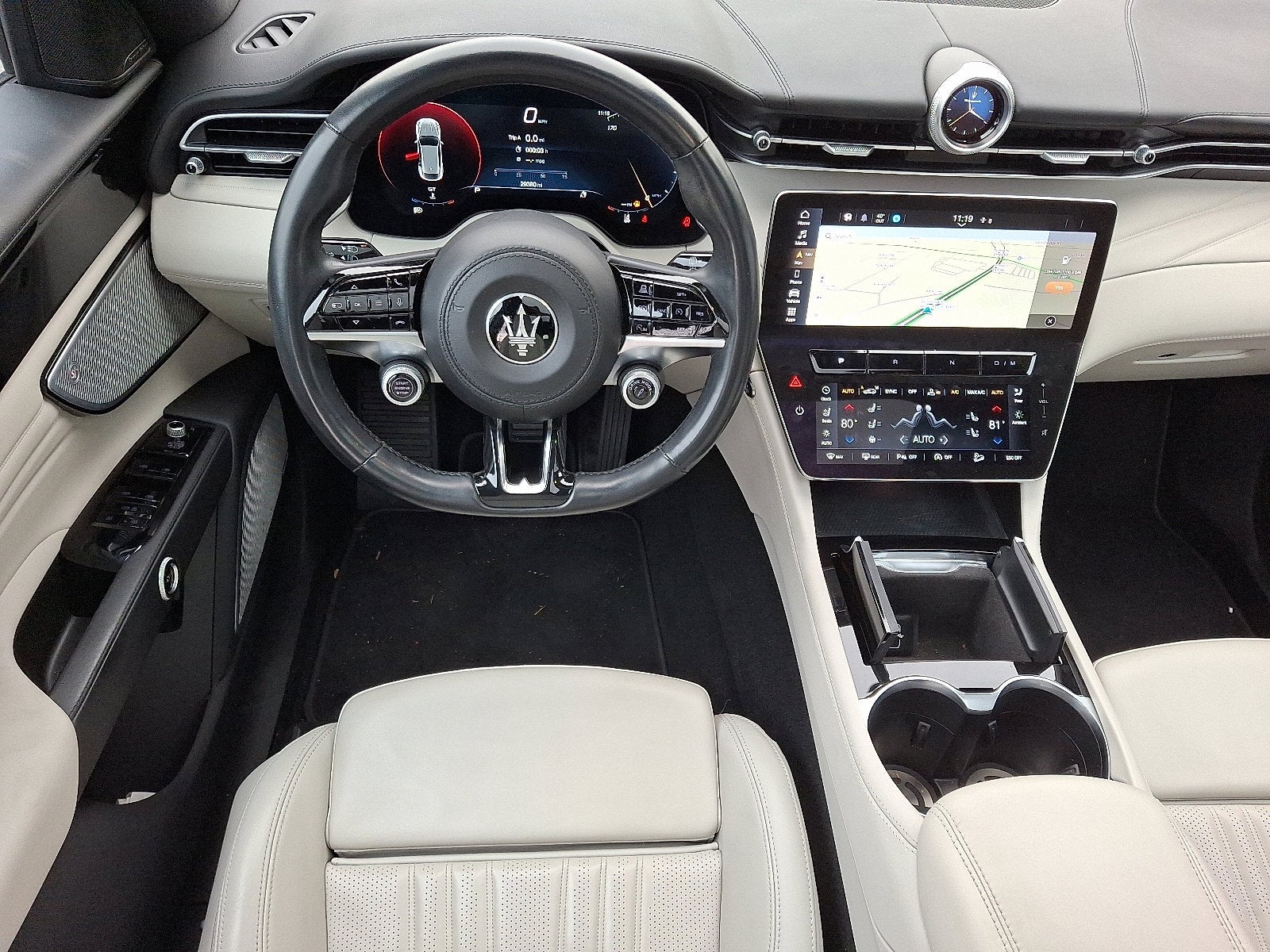 - Radio: Sonus Faber 860 Watts Premium Audio System -inc: 14 speakers w/subwoofer, Maserati Intelligent Assistant (MIA), 12.3" upper touchscreen, 8.8" lower touchscreen, navigation, HD radio, SiriusXM radio w/1-year trial subscription, wired and wireless Apple CarPlay and Android Auto, Maserati connected services w/trial subscriptions, Alexa in-vehicle voice assistant and eCall and bCall w/trial subscriptions