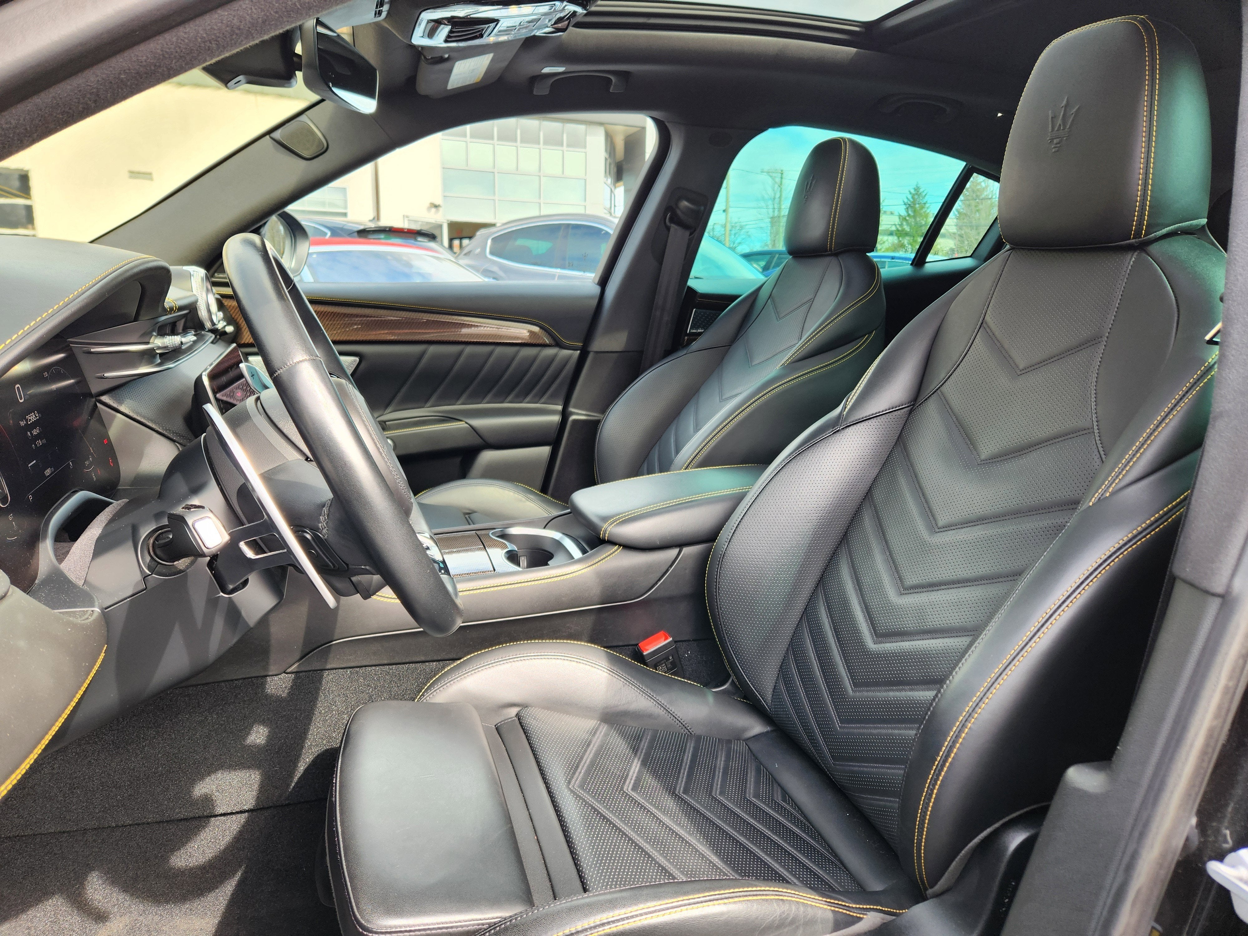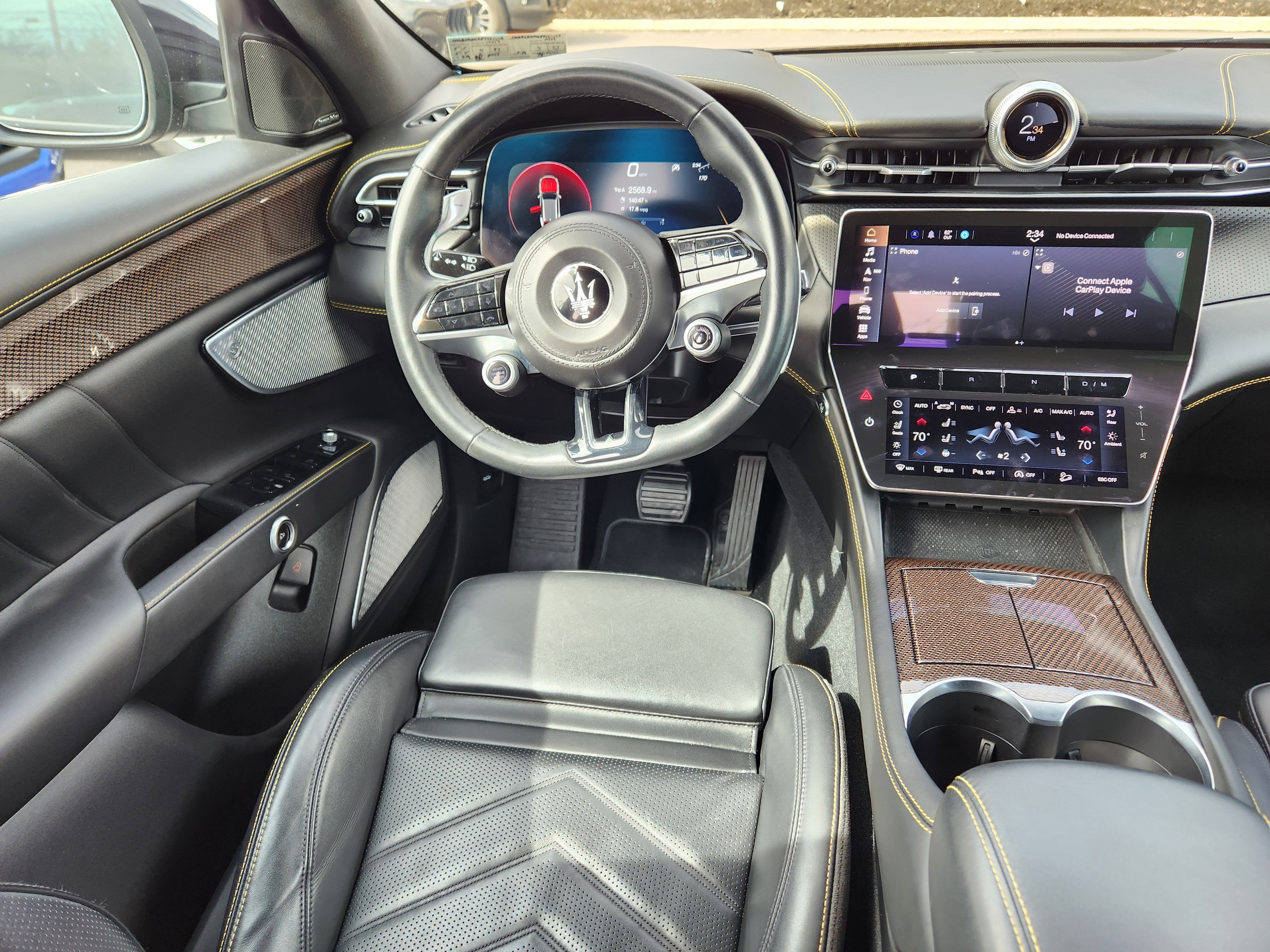 - Radio: Sonus Faber 860 Watts Premium Audio System -inc: 14 speakers w/subwoofer, Maserati Intelligent Assistant (MIA), 12.3" upper touchscreen, 8.8" lower touchscreen, navigation, HD radio, SiriusXM radio w/1-year trial subscription, wired and wireless Apple CarPlay and Android Auto, Maserati connected services w/trial subscriptions, Alexa in-vehicle voice assistant and eCall and bCall w/trial subscriptions