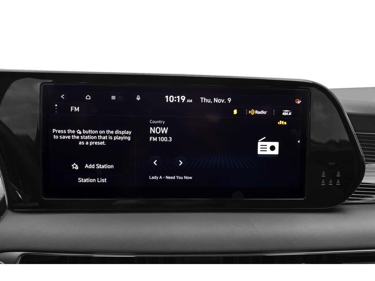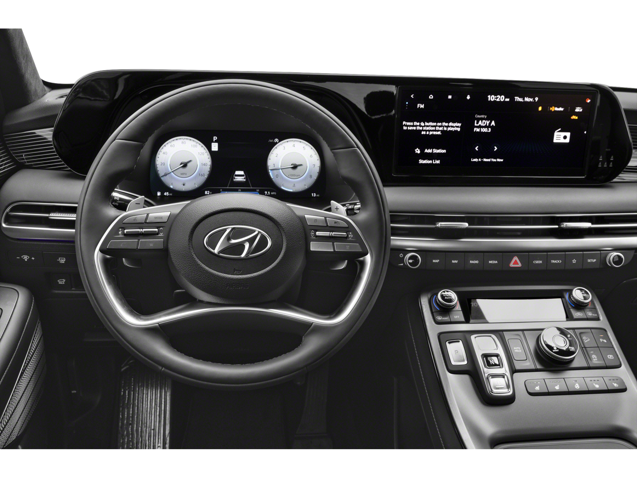 - Radio: AM/FM/MP3 Premium Audio System -inc: 630-Watts Harman Kardon audio system w/12-speakers Quantum Logic Surround Clari-Fi 12.3 color touchscreen display onboard navigation w/traffic flow including incident data via HD Radio (HERE) Over-the-Air (OTA) map updates SiriusXM Android Auto and Apple CarPlay USB dynamic voice recognition rear seat quiet mode passenger talk (in-car intercom) Bluetooth® hands-free connectivity w/multiple device connection and Bluelink Connected Car System