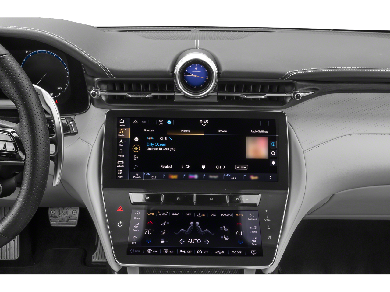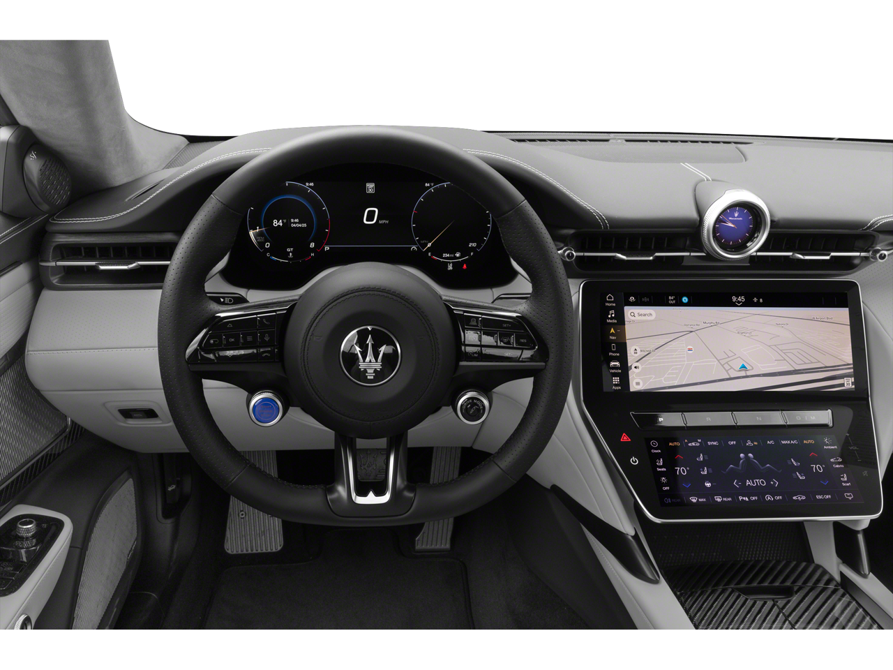 - Radio: AM/FM w/Maserati Intelligent Assistant -inc: 12.3" upper touchscreen and 8.8" lower touchscreen, navigation, HD radio, SiriusXM radio (1-year trial subscription), wired and wireless Apple CarPlay and Android Auto, Maserati connected services w/trial subscriptions, Alexa in-vehicle voice assistant and eCall and bCall w/trial subscriptions