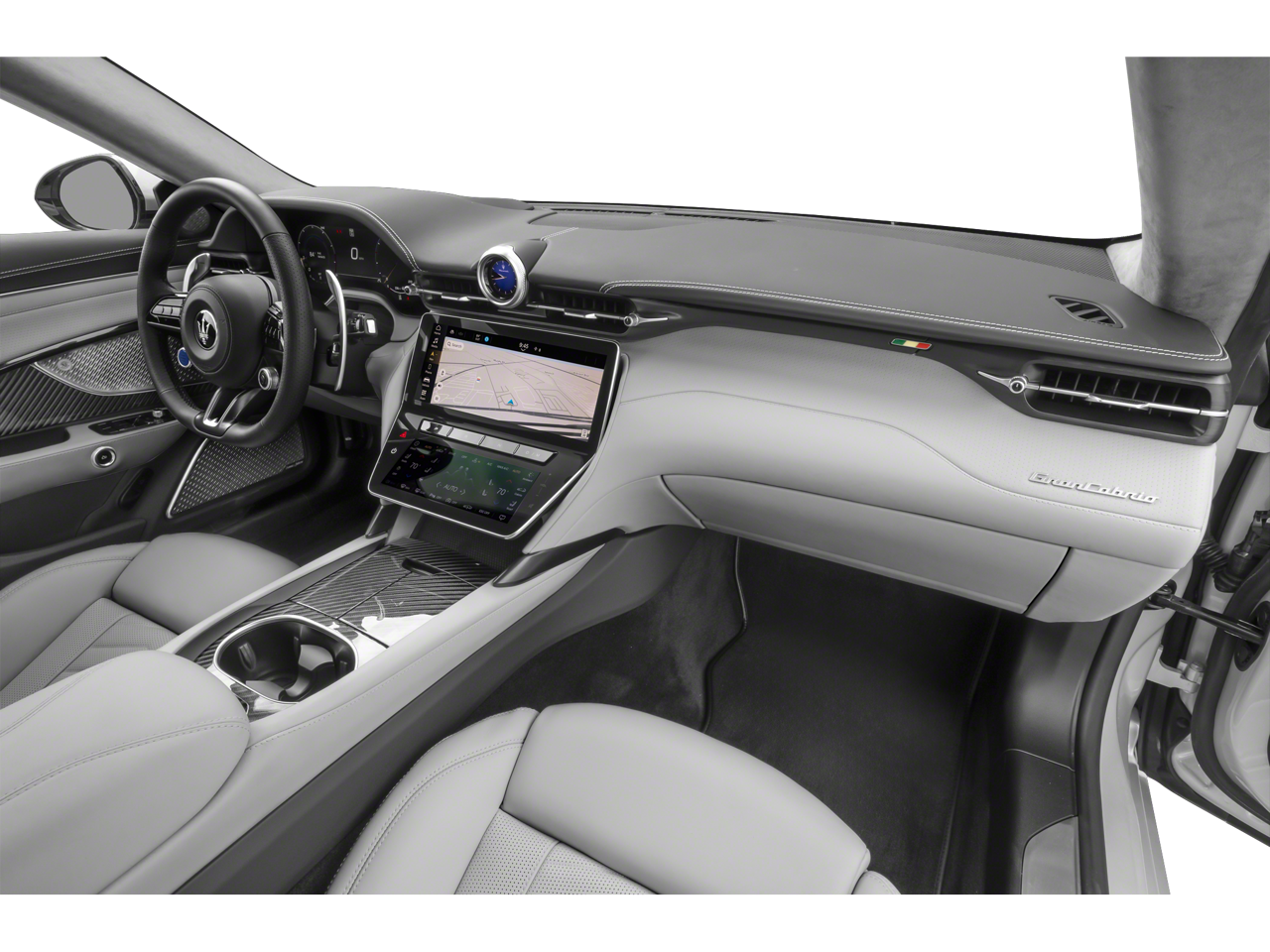2024 Maserati GranCabrio Grigio Maratea Matte-Fuoriserie over Black. It features 16 Speakers Sonus Faber High Premium Audio System, 4-Wheel Disc Brakes, ABS brakes, Active Blind Spot Assist, Active Cruise Control, Active Driving Assist, Active Lane Keeping, Adaptive Cruise Control w/Stop & Go, Adaptive suspension, ADAS Package 2, Air Conditioning, Anodized Red Painted Brake Calipers, Apple CarPlay/Android Auto, Auto High-beam Headlights, Auto tilt-away steering wheel, Auto-dimming Rear-View mirror, Auto-leveling suspension, Automatic temperature control, Brake assist, Driver Drowsy Detection, Dual front impact airbags, Dual front side impact airbags, Electronic Stability Control, Emergency communication system: Maserati Connect, Exterior Parking Camera Rear, Four wheel independent suspension, Front anti-roll bar, Front dual zone A/C, Full Grain Leather Upholstery, Garage door transmitter: HomeLink, Glass rear window, Heads-Up Display, Heated Front Bucket Seats, Heated steering wheel, Illuminated Stainless Steel Door Sills, Integrated roll-over protection, Intelligent Speed Assist, Intersection Collision Assist, Lightweight Aluminum Sport Pedals, Low tire pressure warning, Memory seat, Occupant sensing airbag, Overhead airbag, Panic alarm, Power driver seat, Power steering, Power windows, Radio: AM/FM w/Maserati Intelligent Assistant, Rain sensing wipers, Rear anti-roll bar, Rear window defroster, Remote keyless entry, Security system, Speed control, Speed-sensing steering, Speed-Sensitive Wipers, Sport steering wheel, Steering wheel memory, Steering wheel mounted audio controls, Surround View Camera, Tachometer, Telescoping steering wheel, Traction control, Traffic Sign Information, Trident Logo Stitched on Headrests, Trofeo Comfort Package, Trofeo Sport Design Package, Variably intermittent wipers, Ventilated Front Seats, Wheels: 20 Fr & 21 Rr Forged Machined Astreo, Wind Deflector, and a Wireless Phone Charger.