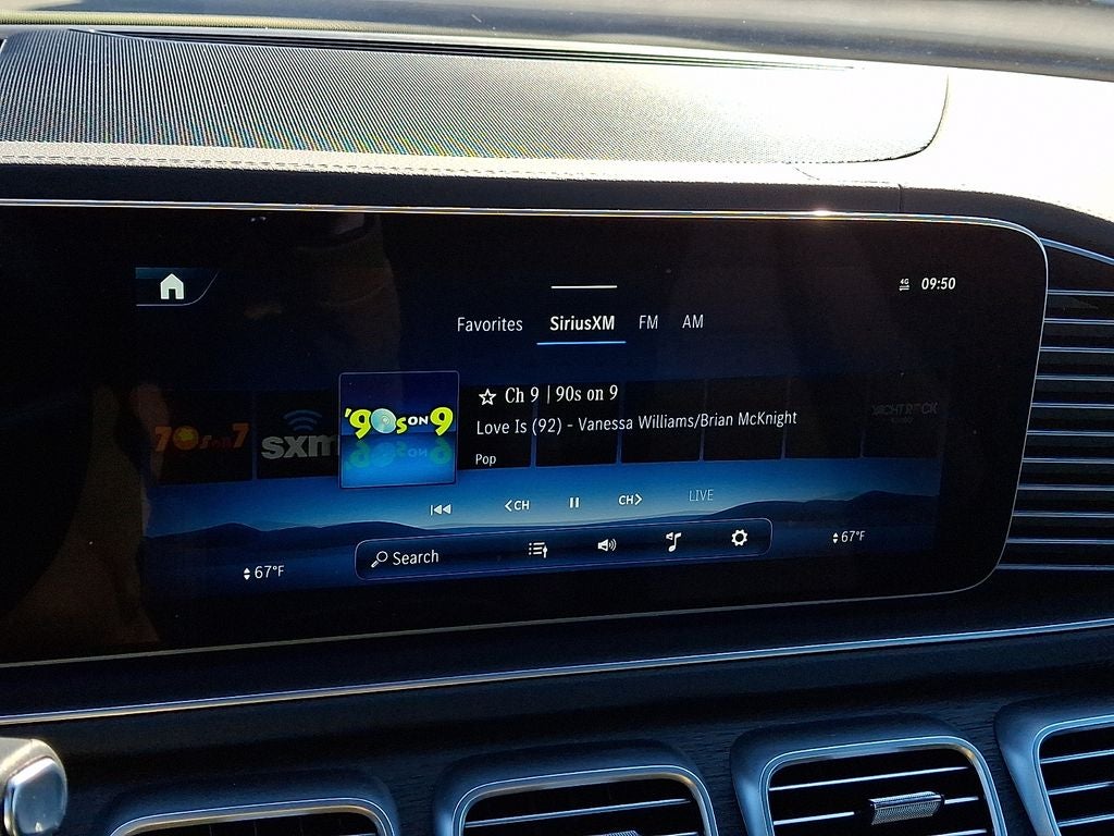 - Radio: Burmester Surround Sound System -inc: Dolby Atmos, music streaming, sound personalization, 13 speakers, 590-watt amplifier, Frontbass technology, voice control w/Natural Language Understanding, wireless Apple CarPlay and Android Auto, 12.3" media touchscreen display, MB navigation w/live traffic and map updates and SiriusXM radio
